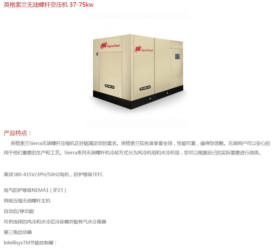 英格索蘭無(wú)油螺桿空壓機(jī)37-75KW