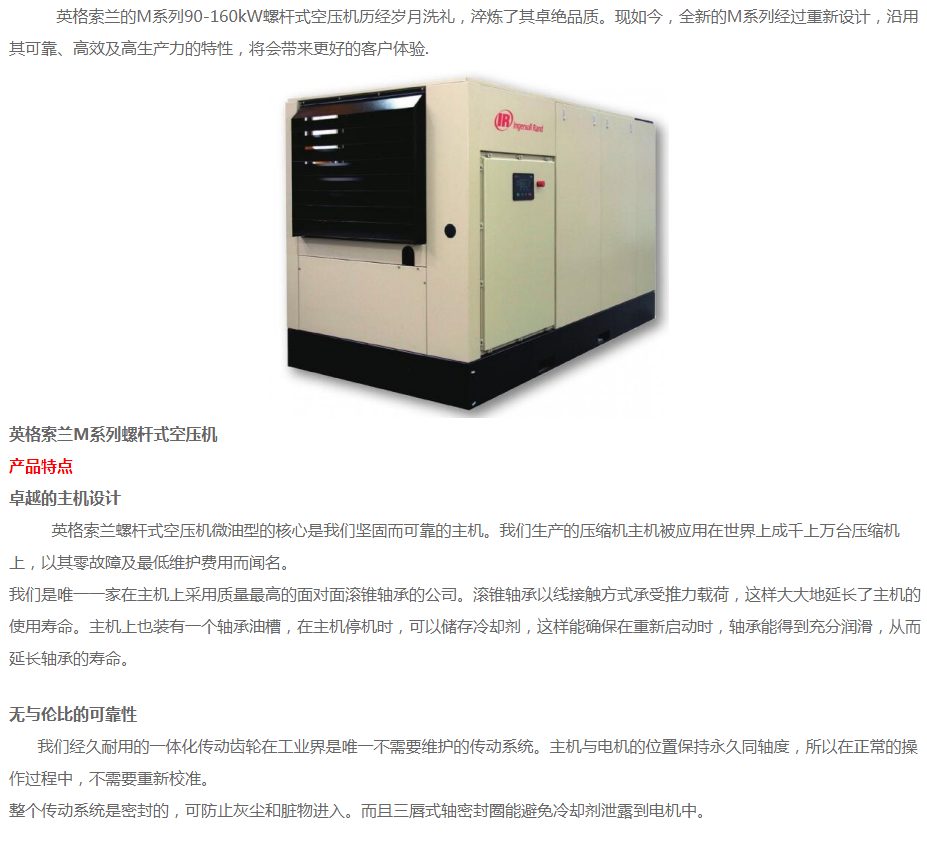 濟(jì)南銳博特機(jī)械設(shè)備有限公司是英格索蘭空氣壓縮機(jī)的授權(quán)代理商,代理銷(xiāo)售美國(guó)英格索蘭全系列的空壓機(jī)及后續(xù)處理設(shè)備。公司自成立以來(lái),經(jīng)過(guò)公司全體同仁不斷努力,開(kāi)拓創(chuàng)新,以?xún)?yōu)良的技術(shù)、完善的售后服務(wù),使得公司贏得了一個(gè)又一個(gè)的誠(chéng)心客戶(hù)。我公司擁有多名專(zhuān)業(yè)的銷(xiāo)售及售后服務(wù)人員,為客戶(hù)提供空壓系統(tǒng)的售前、售中及售后的全方位優(yōu)質(zhì)服務(wù)。另公司有多名具有英格索蘭壓縮機(jī)授權(quán)服務(wù)證書(shū)的服務(wù)工程師,能維修和保養(yǎng)國(guó)內(nèi)外各種品牌空壓機(jī),公司各種國(guó)內(nèi)外品牌空壓機(jī)配件庫(kù)存齊全。