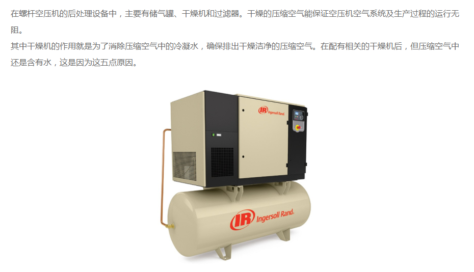 空壓機(jī)裝了干燥機(jī),還有很多水是怎么回事?英格索蘭空壓機(jī)